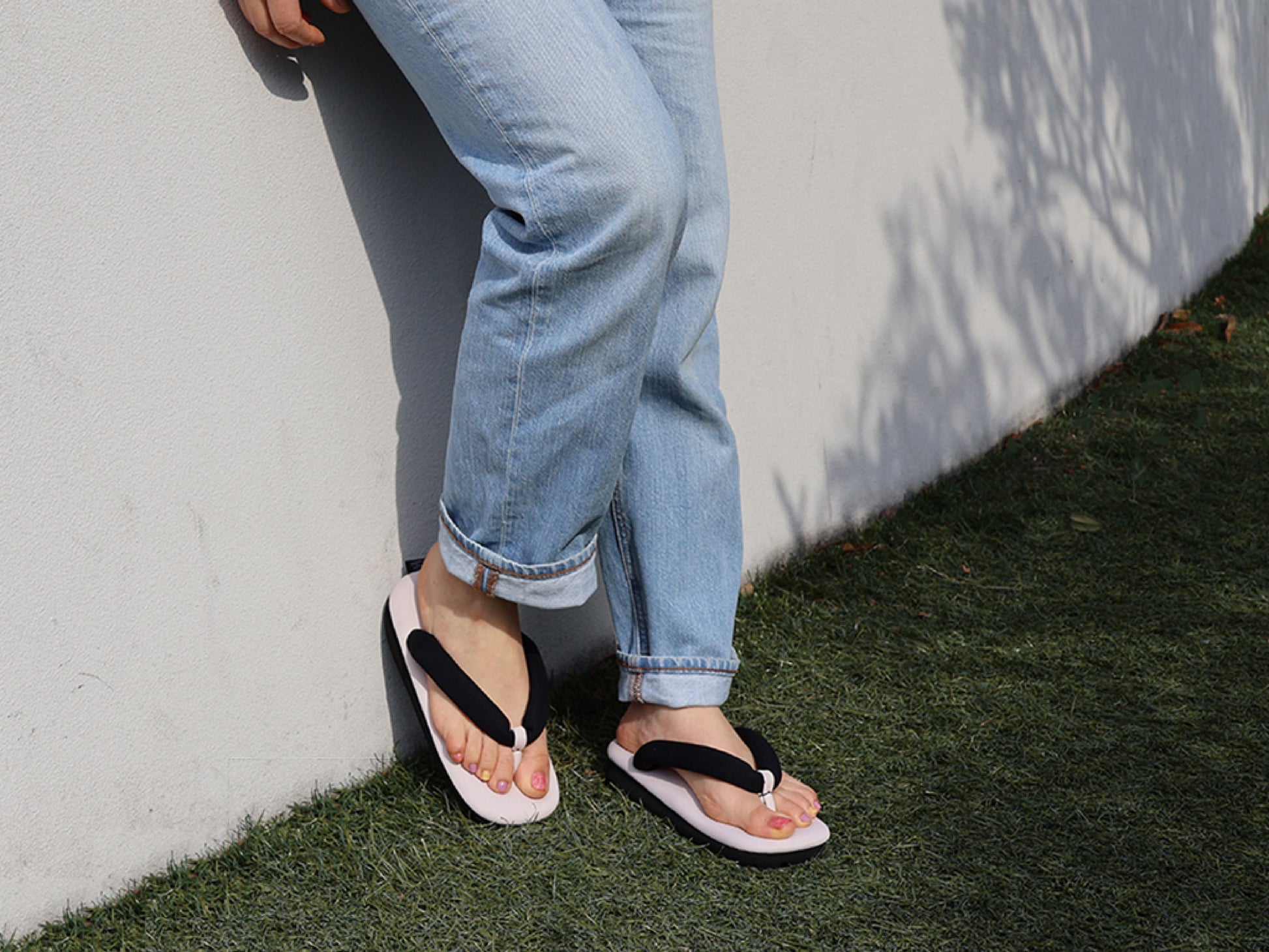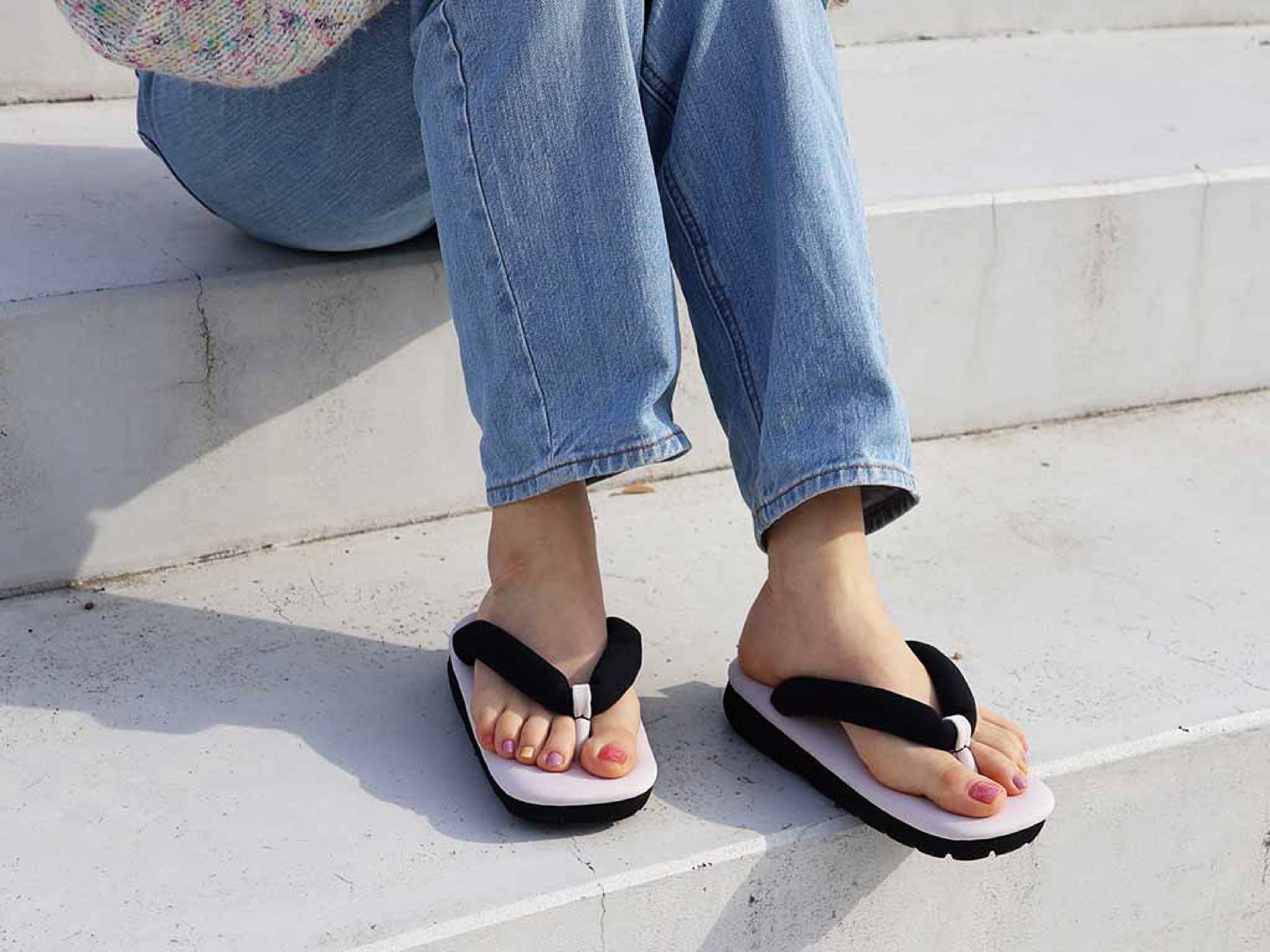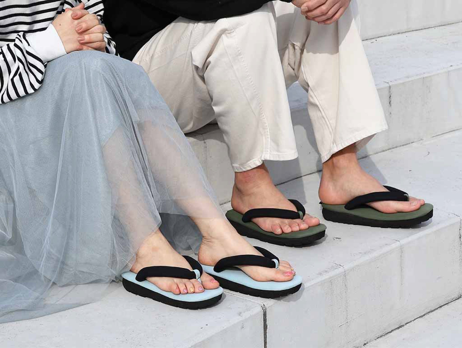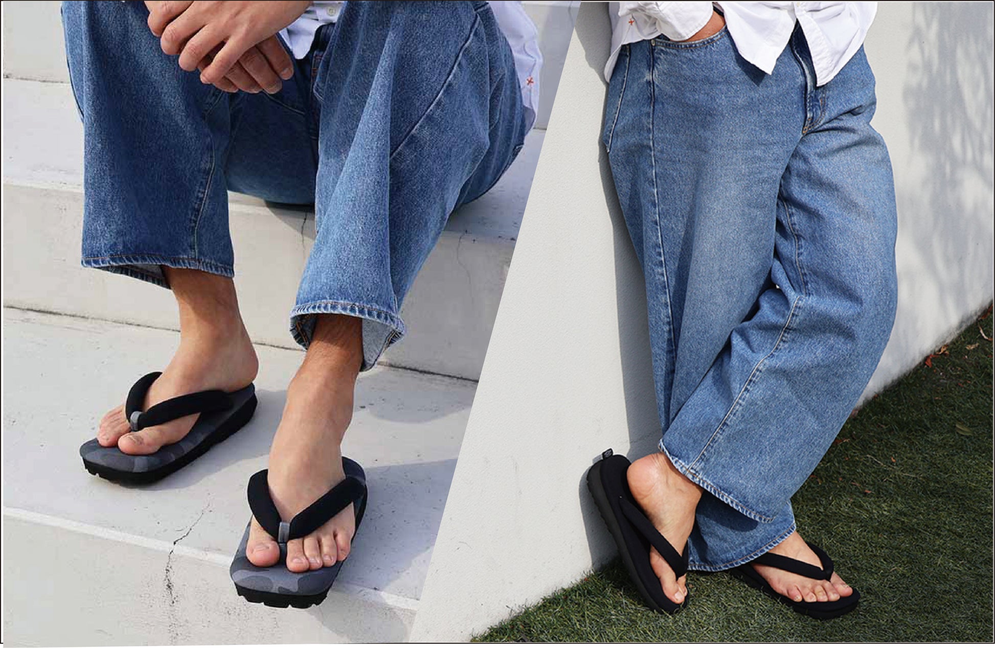 軽量で優れたグリップと柔らかいクッショニングを実現した国産ソールを装着し、雪駄の新しい可能性へ!